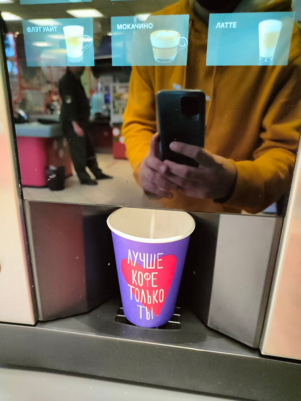 5️⃣ Оплатите напиток. Автомат принимает карту, бесконтактную оплату телефоном и оплату по QR коду.