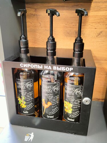 У нас можно приготовить вкусный и большой (350 мл.) кофе или горячий шоколад, добавить сиропы по вкусу и взять всё это удовольствие с собой.